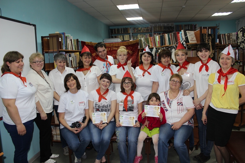 Для всех читателей, кто пришел в библиотеку, работало фотоателье, где каждый мог сфотографироваться с атрибутикой времен Советского Союза: пионерским горном и барабаном, портретом В. И. Ленина на фоне красного знамени, в пилотке и пионерском галстуке.