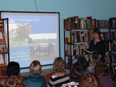 Все библиотеки района ведут совместную работу со школами, так как основными пользователями и посетителями являются дети. Поскольку интересы чтения взрослого в значительной степени зависят от того, какие отношения у него сложились с книгой в детстве, то библиотека должна уделить как можно больше внимания воспитанию маленьких читателей. Об опыте работы в этом направлении присутствующим рассказала заведующая Солонецкой сельской библиотекой. Большая работа с юными читателями в этой библиотеке ведется совместно с педагогами начальной школы. Рассказ сопровождался электронной презентацией о Солонецкой сельской библиотеке и о проводимых интересных познавательных мероприятиях для школьников.