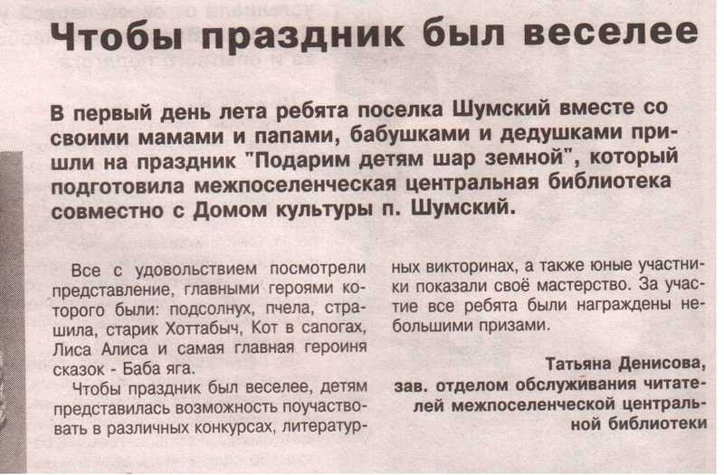 О празднике «Подарим детям шар земной», проведенном Межпоселенческой центральной библиотекой совместно с Домом культуры п. Шумский. посмотреть
